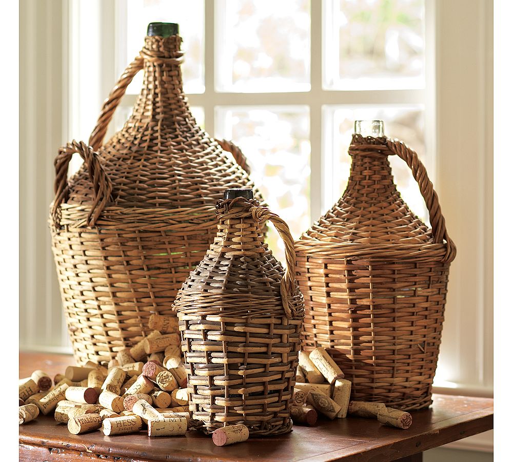 The demi john....wicker covered bottles...can be found in our shop for $35!!